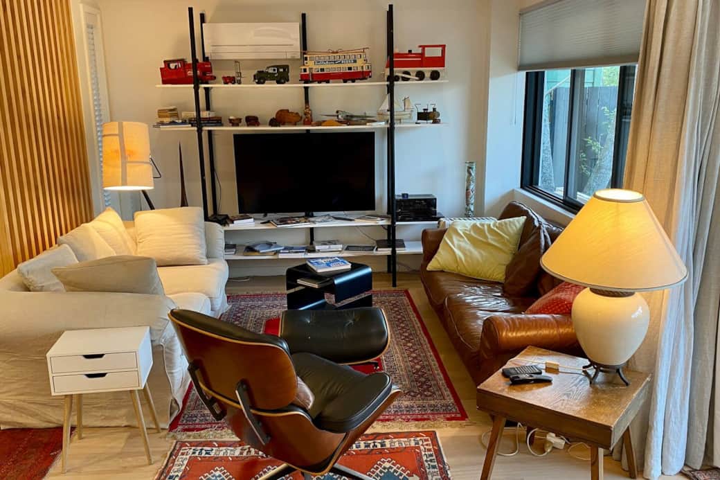 Stylish two level townhouse, centrally located with private garden, media room / work space, modern kitchen, 2 x TV’s, fast internet, laundry and large living area opening onto a patio bordering a lawn. The property is located close to the central city and has a bus stop conveniently located on the street frontage. Modern well equipped kitchen, lounge, dining table and toilet. Upstairs is a media room and three bedrooms Please be aware I do leave some clothing and personal effects in the walk-in closet. There’s plenty of space for your use.